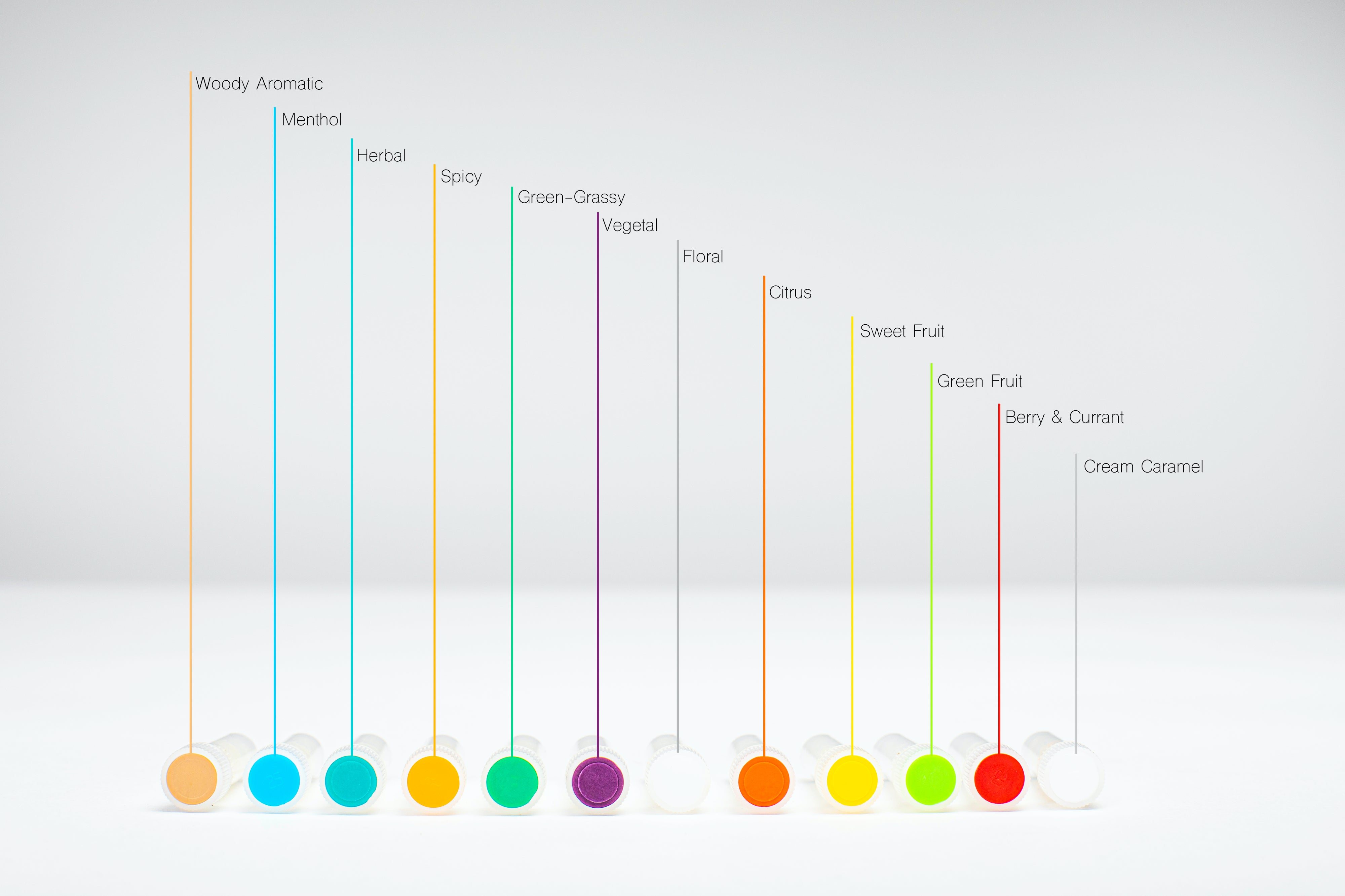 During the research and development process, four steps were taken to create the flavor categories. Victor and the team began with Hop Compound Identification for each of the flavors. It was important to the team to include natural flavors that would accurately portray the hop aromas associated with the categories. The second step included Prototype Development which challenged the team to find the best prototype that matched the target flavor categories. A variety of tinctures were created to assess the efficiency for each flavor profile. Third step was the Sensory Feedback. Standards were presented in vials for evaluating smell and aroma. The hop standards were used in beer training to ensure the correct flavor profiles. In the final steps more testing was done to lock in the best aromas to help you identify hop flavors.